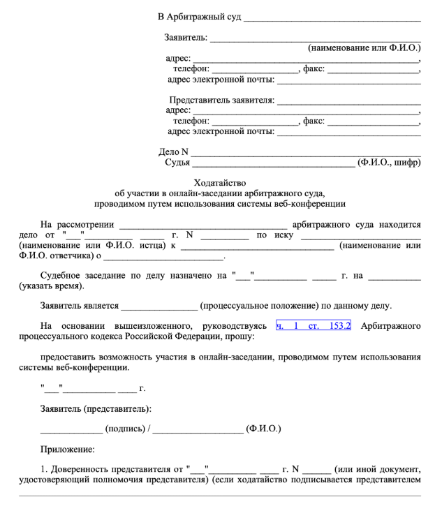 Заседания регулируются Арбитражным процессуальным кодексом РФ и разъяснениями Верховного Суда РФ. В соответствии со ст. 153.1 АПК РФ процесс может проходить дистанционно, если участник подал ходатайство, а суд располагает необходимыми техническими средствами для организации видеоконференции.